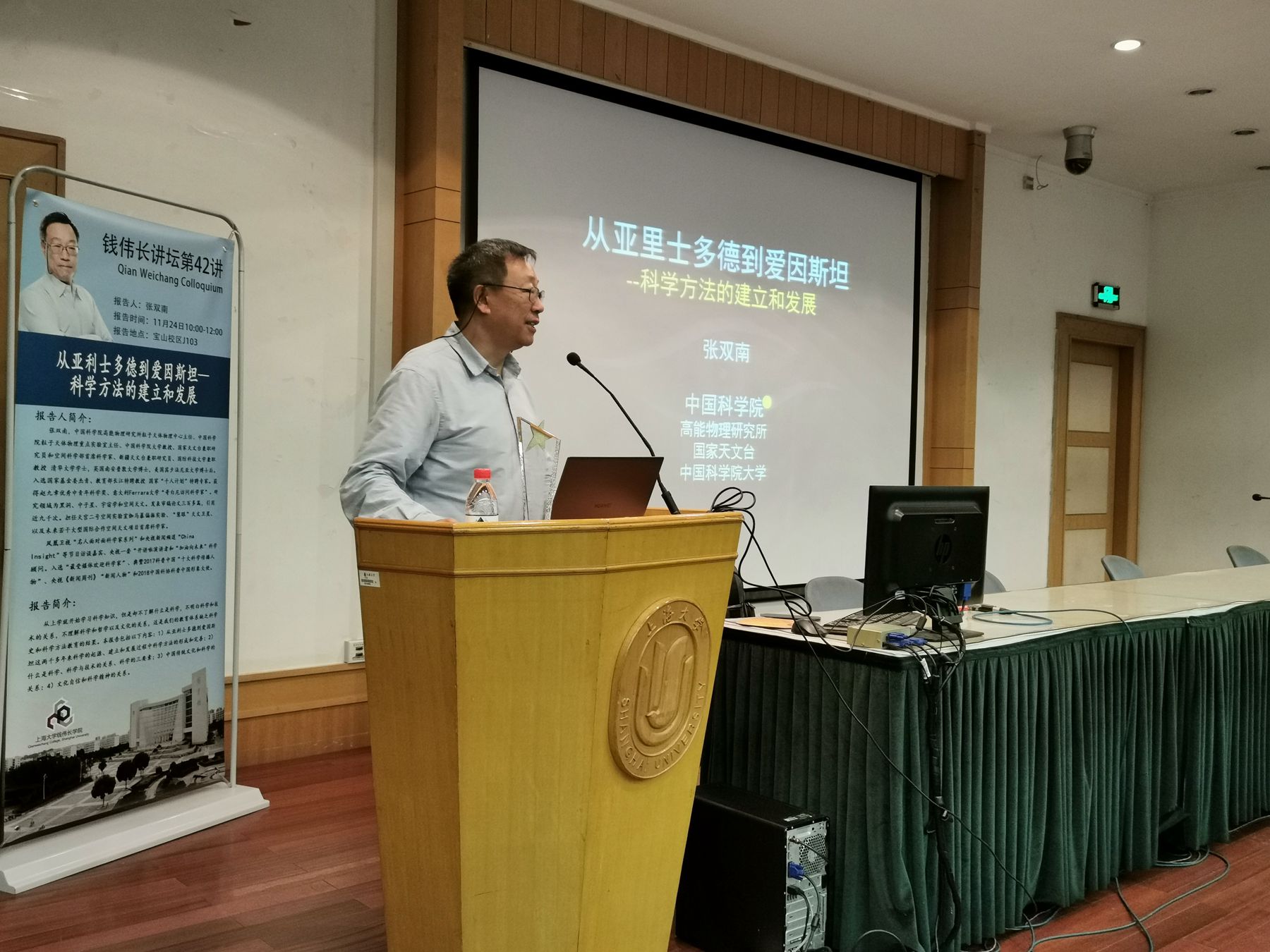 11月24日10:00,2019-2020年冬季学期首日教育暨钱伟长讲坛第42讲——"从亚里士多德到爱因斯坦-科学方法的建立和发展"在宝山校区J103顺利举行。