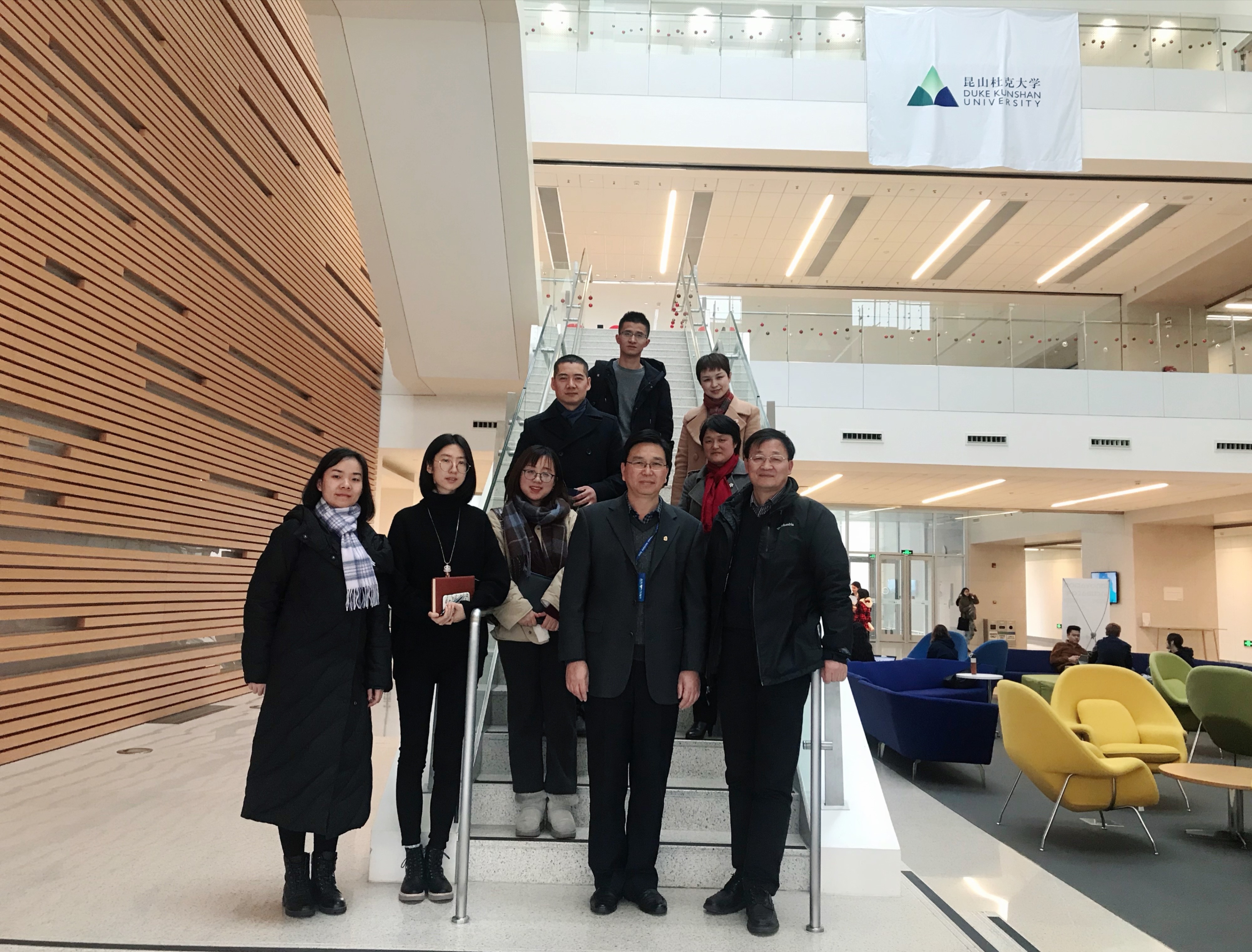 1月9日下午,永利yl23411常务副经理张阿方、直属党总支书记吴蔚、副经理李颖洁、姜颖、副书记沈青松、组织人事干事刘佳、教学兼外事秘书唐乐等一行7人赴昆山杜克大学调研交流,昆山杜克大学副董事长常晓林、学术部顾奕君、外联部孙蕾、王勃老师进行了热情接待。