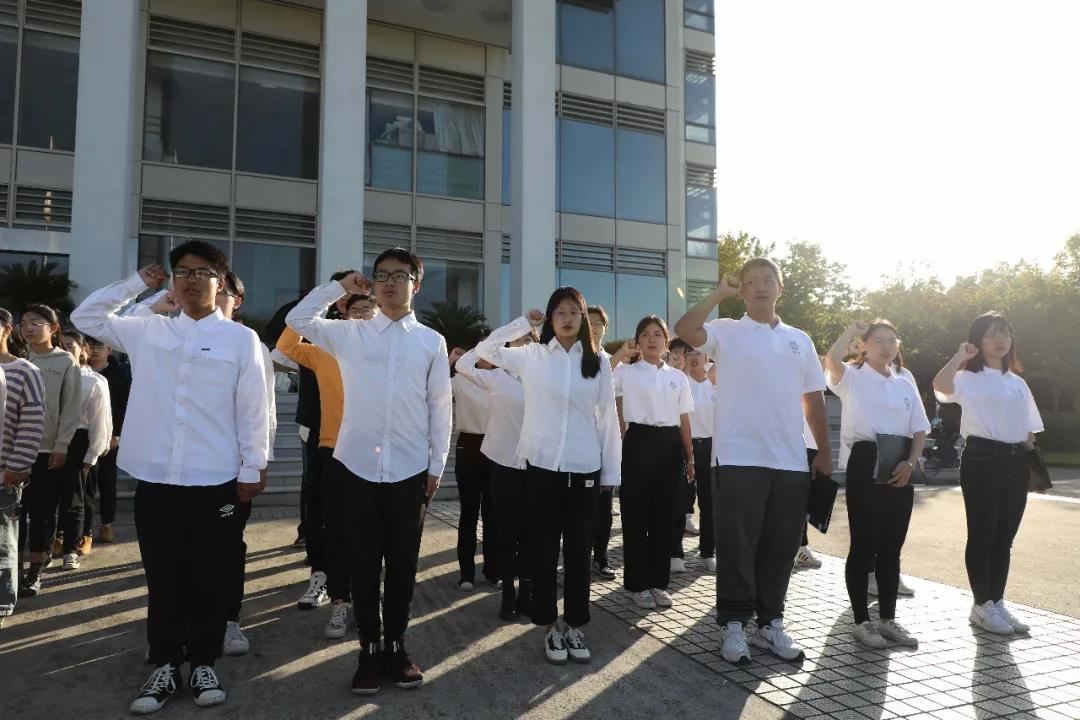 随后,校员工会和员工社团代表表演了配乐诗朗诵《一个大写的人》,表达对钱伟长老董事长的深切缅怀。校员工会代表杜甘露同学带领现场同学在国旗下庄严宣誓,表示将在钱伟长教育思想与精神的指引下,牢记使命,砥砺前行,争做新时代“六有”青年,为实现伟大复兴中国梦贡献青春力量。