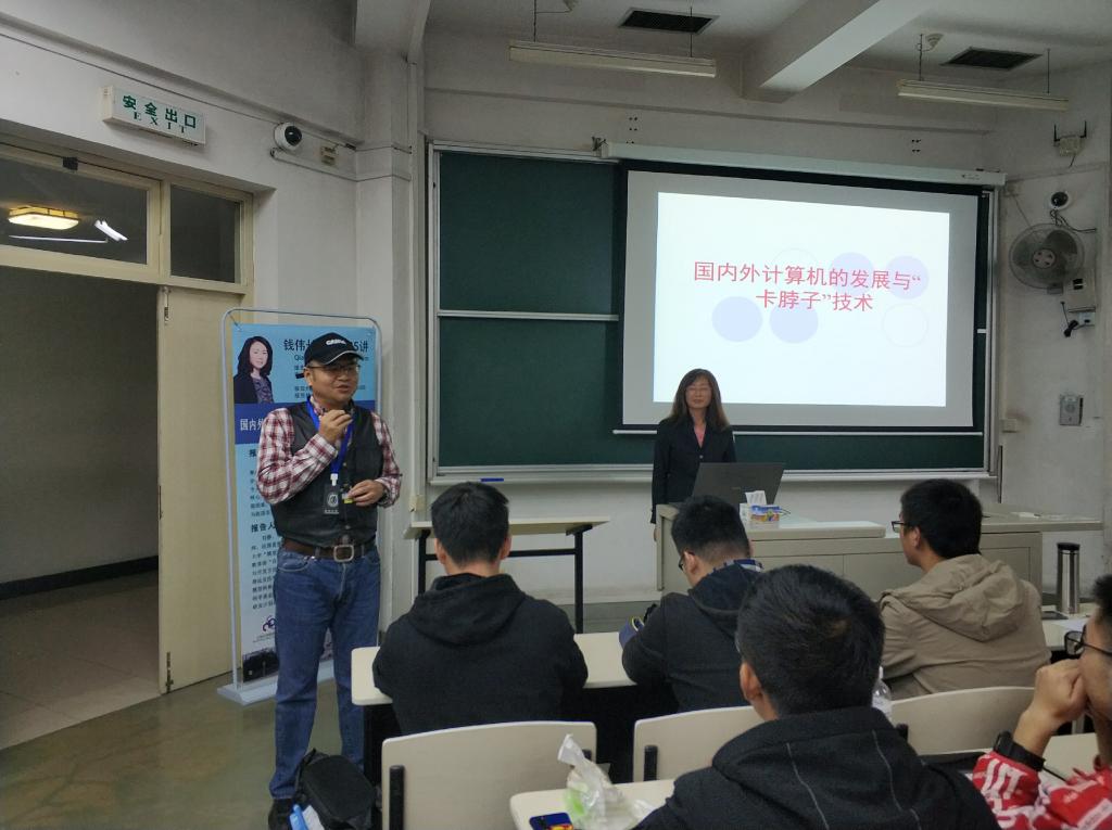 讲座中,刘教授从计算机科学技术入手,循循善诱地带大家回顾了计算机技术发展的四个主要阶段“电子管——晶体管——中小规模集成电路——大规模及超大规模集成电路”,又由此引出了计算机技术正在步入智能化阶段。刘教授还自豪地给大家介绍了我国计算机技术在超算等方面取得的令人瞩目的成绩,带领大家回顾了计算机诞生的历程:从第一台电子计算机(ENIAC 1946)到如今每秒能执行几亿次运算的第四代集成电路。此外,刘教授还特别对计算机操作系统发展的龙头公司进行了介绍,无论是风头正盛的微软(Microsoft),还是逐渐淡出历史舞台的IBM公司,都给大家留下了十分深刻的印象。本次报告内容除了这些“高大上”的操作系统,还有与大家每个人都息息相关的计算机硬件知识,如CPU和GPU的发展与介绍,每一位同学都兴致勃勃,听得如痴如醉。