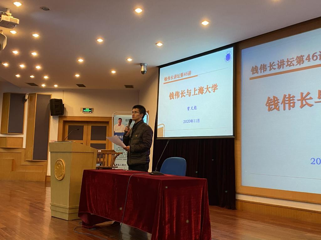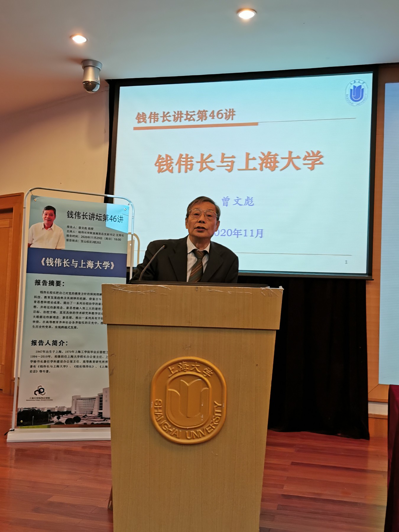 曾教授强调,钱伟长教育思想就是在钱老办学的实践中产生的。钱老把自己对党的教育方针的深刻理解和对社会、科技、教育发展趋势及其规律的把握,借鉴古今中外优秀教育思想和理论成果,提出了一系列治校治学的新理念、新思想,并将这些新理念、新思想融入到上大的建校方针、办学目标、治校方略。上大根据这些新理念、新思想,推出一系列具有开创性的重大举措,推进一系列重大工作,推动公司发生历史性变革,实现跨越式发展。经过上大全体师生长期的实践,逐渐形成了钱伟长教育思想。他是一位真正的科学家、教育家,是位“大家”。