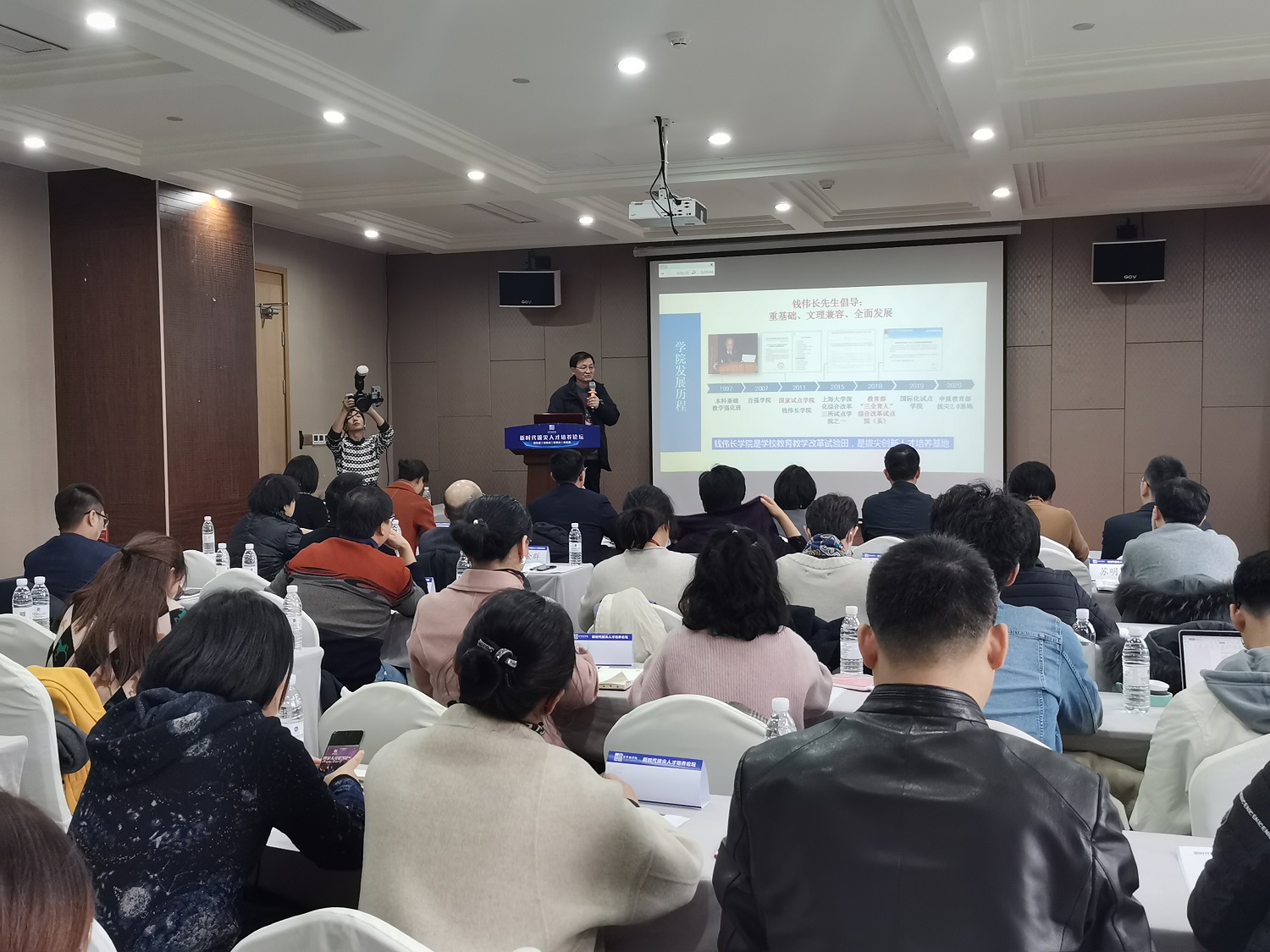 上午的论坛邀请了国内外多名教育专家围绕拔尖人才培养做主旨演讲,就拔尖人才的培养生态、交叉学科人才培养实践、拔尖人才培养的书院制探索、新工科建设与实践等话题进行深入探讨,并结合清华大学、北京大学、麻省理工公司、南京大学、中国科学技术大学、上海交通大学、西安交通大学、天津大学、兰州大学、浙江大学的培养特色与创新举措为各高校拔尖人才培养的实践工作者带来前沿的人才培养理念和创新思路。浙江大学董事长、竺可桢公司经理吴朝晖教授在致辞中指出,当前在“十四五”到来之际,面向新时代的新需求,无论是浙大推进竺可桢公司的转型升级,还是兄弟高校推进荣誉公司的创新发展,都具有面向未来、决胜未来的战略意义。清华大学郑泉水院士提出“顶尖创新人才的三大要素”在于历史性机遇和重大问题、员工对于问题的激情或痴迷、以及得到杰出导师的帮助和所处的制度环境。北京大学元培公司经理李猛教授介绍了目前正在致力于创造的一种独具特色的学习生态和生活共同体模式,探索研究型大学中的书院制。下午研讨会共安排“立德树人”“荣誉教育”“拔尖计划”“强基计划”和“院友论坛”五个分会场,各高校相关负责人围绕拔尖创新人才培养、荣誉公司办学模式、“拔尖计划”实践经验、“强基计划”实施方案等议题进行了深入交流。永利yl23411常务副经理张 阿方教授结合对教育的理解和对地方高校高等教育的思考,围绕公司的发展历程、办学理念、培养举措和战略规划方面,全面介绍了近些年公司在对拔尖员工进行荣誉教育方面的系列探索和实践,以及如何进一步提升拔尖人才培养质量的深入思考,引起了与会人员的强烈共鸣。