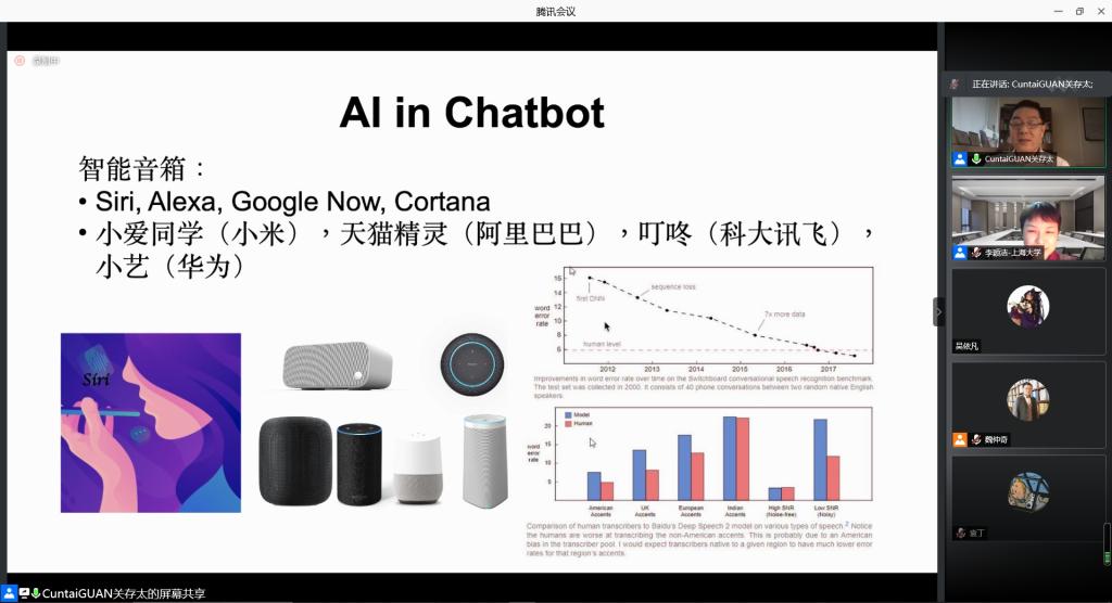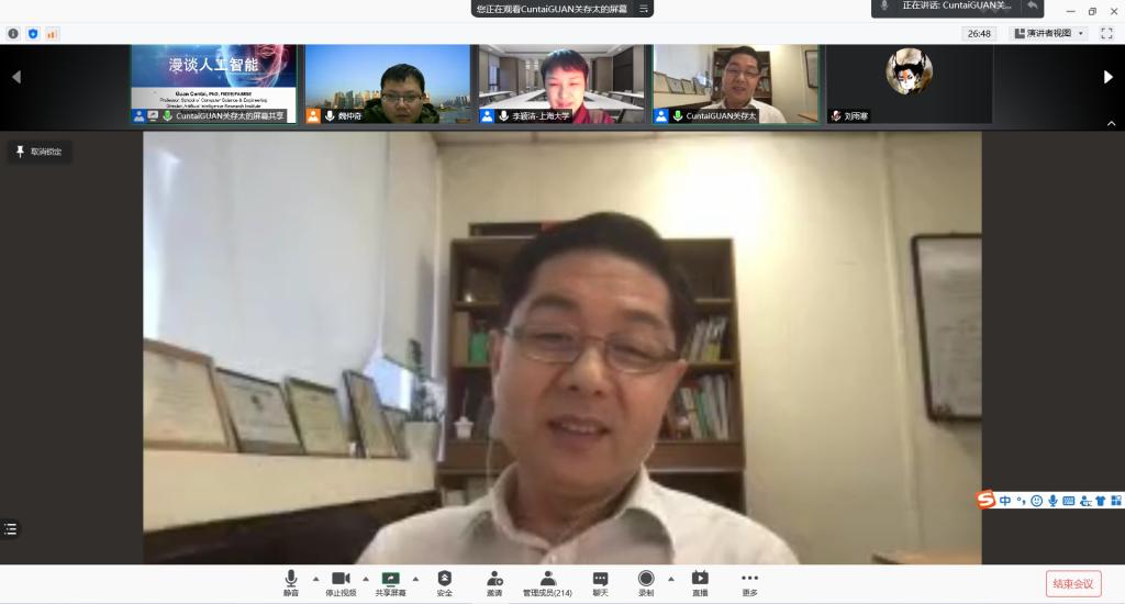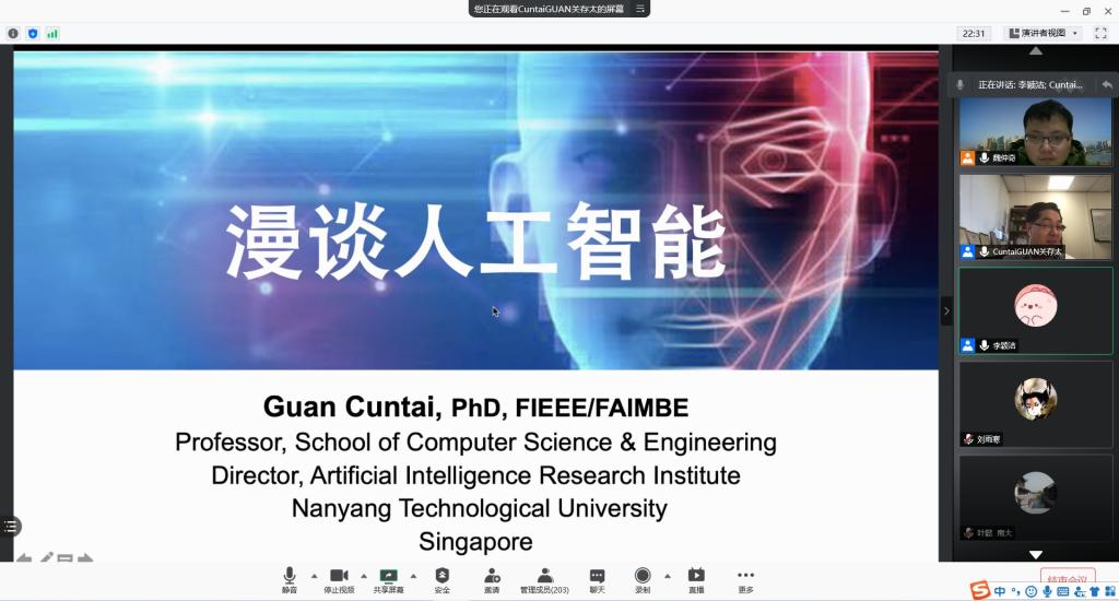 3月2日晚上18:30,钱伟长讲坛第48讲《漫谈人工智能》通过腾讯会议平台线上顺利举行。本次讲坛有幸邀请到了新加坡南洋理工大学终身教授关存太教授做报告。关教授现任南洋理工大学人工智能研究院经理、先进智能研究院联席经理、美国电子电气工程师学会会士、美国医学与生物工程学会会士,曾任新加坡康复研究院联席经理、新加坡模式识别和机器智能学会主席。本次讲座由永利yl23411副经理李颖洁教授主持,永利yl234112020级辅导员魏仲奇及全体2020级本科生和其他人员近300人共同聆听了此次报告。
