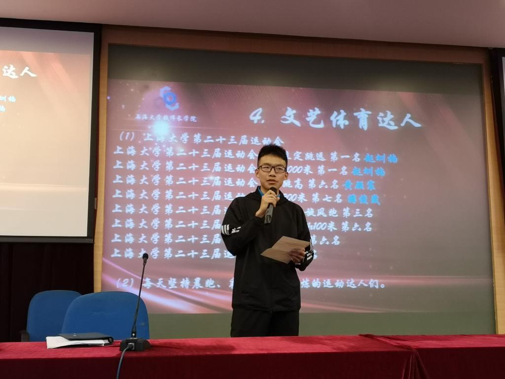 接下来,沈青松老师介绍了“永利yl23411”、“上大永利yl23411团学”微信公众号运营的小编们以及公司宣传队伍中的宣传达人,对在宣传工作中付出努力的同学表示感谢,同时还介绍表彰了团委员工会、班团骨干、国旗卫士班、钱伟长教育思想宣讲团等员工社团成员,他们在日常组织开展员工活动,为丰富校园生活、服务同学贡献了自己的一份力量。