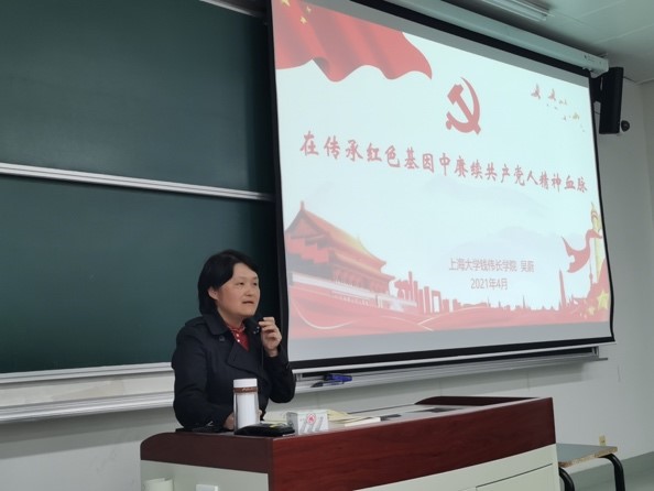 4月21日下午,为庆祝中国共产党成立一百周年,进一步加深对中国共产党人精神的系统认识和正确理解,传承红色基因,赓续共产党人精神血脉,切实增强入党积极分子在实践中守初心、担使命的思想自觉和行动自觉,不断增强同学们的责任感和使命感,永利yl23411直属党总支书记吴蔚老师为理公司党校办学点的41期入党积极分子以及永利yl23411员工党支部的全体党员做“在传承红色基因中赓续共产党人精神血脉”的主题党课。