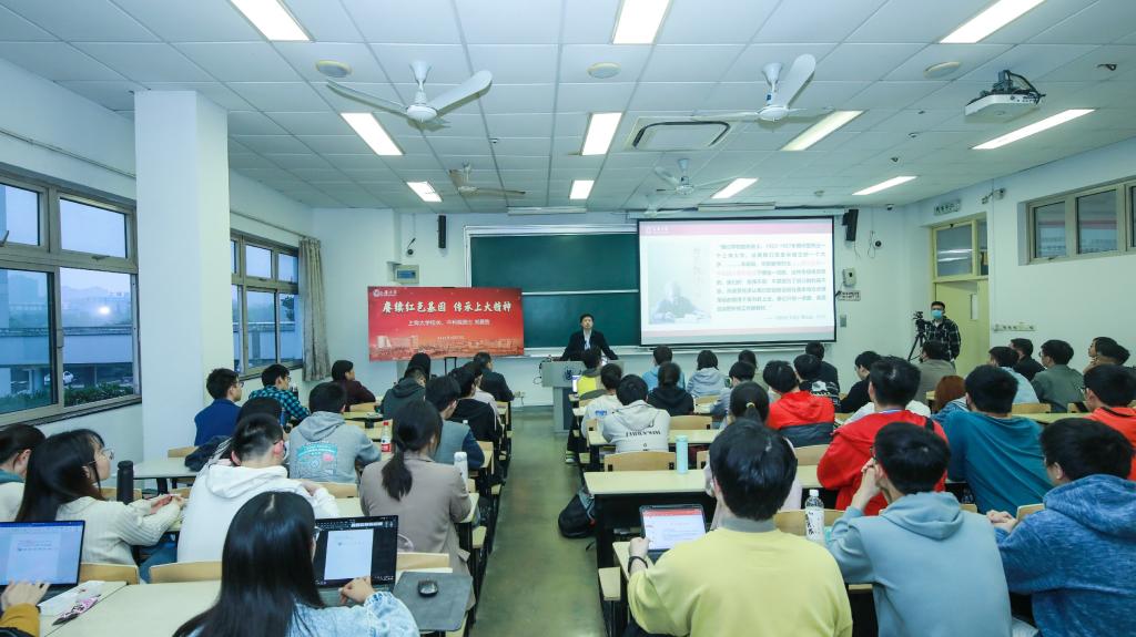 2021年4月27日晚,刘昌胜董事长走进《中国近现代史纲要》课堂,为永利yl23411近100名本科生上了一堂主题为“赓续红色基因,传承上大精神”的思政课,公司青马工程班、人才公司30余名学员也共同聆听了此次课程。