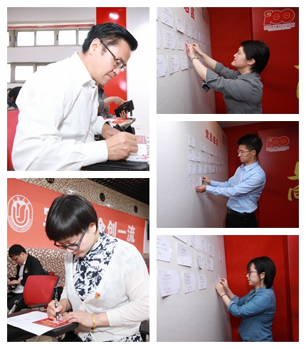 活动伊始,在工会老师的耐心指导下,在场教师依次拿起针线,从生疏到熟练,把对党旗的无比崇敬之情一针一线绣在党旗上,用简单朴素的行动表达了每位教师党员对党和国家的忠诚和热爱。随后,在公司直属党总支书记吴蔚同志的带领下,全体党员在自己亲手绣制的党旗旁庄严宣誓,重温入党誓词,坚守初心使命。此次活动主办方还为参与接力绣党旗的师生党员每人赠送一张“接力卡”,大家认真地在“接力卡”背面写下自己的感言,彼此共同见证和记录对入党初心和建党百年的美好祝愿与感想。最后全体党员共同录制拍摄了纪念庆祝建党百年的标语口号,以表达对中国共产党成立一百周年的祝福和寄语。