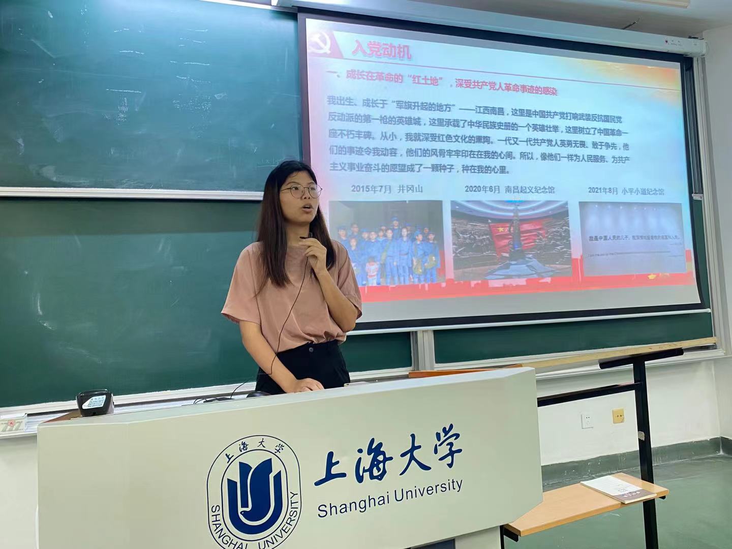 大会伊始,顾老师通过播放短片《建党百年版错位时空》——多想让你看看百年后的中国多美丽,引出了本次大会的主题。随后,2018级员工党员代表熊艺璇同志以“为什么要入党”、“入党要做什么”、“入党能获得什么”三个问题开始讲述她的入党故事。熊艺璇同志说,革命“红土地”的滋养、亲人们榜样的力量以及“党员走到哪里,旗帜就飘扬到哪里”的情怀促使她毫不犹豫地加入了中国共产党。党员身份的使命感和为群众服务的责任感,也更使她坚定了跟党走的政治信念。熊艺璇同志结合自身经历,希望能有更多志同道合的、优秀的青年同志加入中国共产党,为国家、为人民贡献自己的力量。