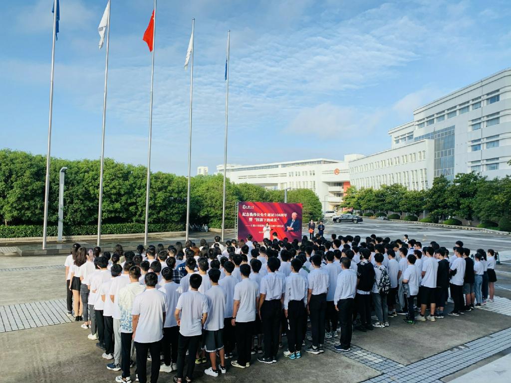 升旗仪式伊始,国旗卫士班旗手代表护送国旗入场,在全体师生的注视下,进行了庄严而肃穆的国旗、校旗升旗仪式。随后,钱伟长教育思想员工宣讲团的代表曾颖驰同学为大家带来题为《自强不息,伟业流长》的演讲,深情地回顾了钱老作为爱国者的一生,号召同学们将自己的志趣和国家的命运相结合,坚定理想信念,实现科技报国。