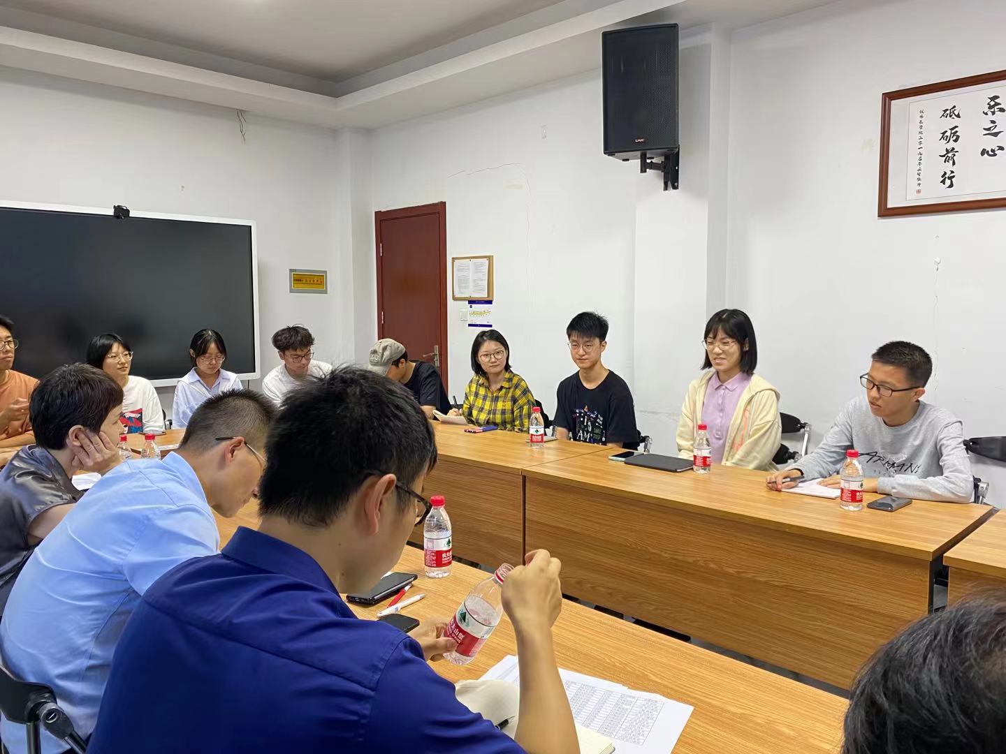 在本次座谈会上,各班班委踊跃发言,提出了有关学习、宿舍生活、班级凝聚力等方面的诸多问题,老师们进行了一一回答,并给予了许多有建设性的意见。针对同学们最为关心的学业问题,吴蔚老师、周全老师和张博锋老师建议同学们要迅速适应快节奏的学习生活,重视补足短板,勤能补拙、夯实基础,鼓励各班班委能够主动作为,积极收集同学们学习生活中所遇到的共性问题,做老师与同学之间沟通的桥梁,比如通过老师答疑、朋辈辅导等形式帮助同学们解决学业上的问题与困惑。