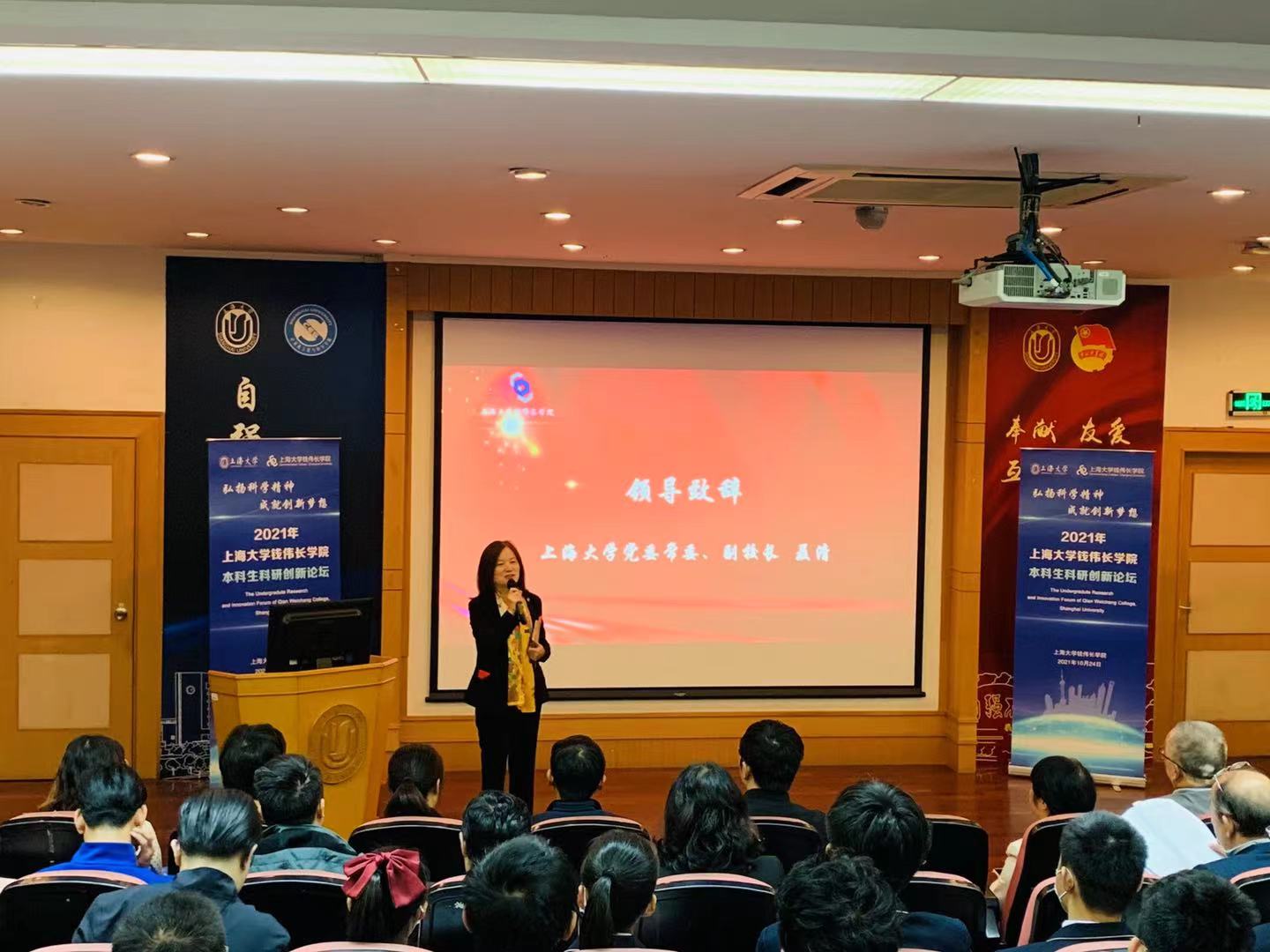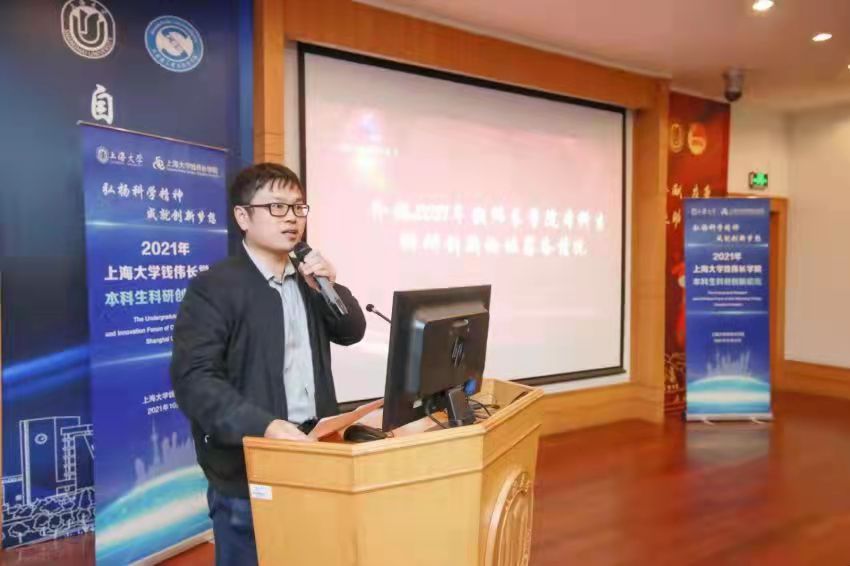10月24日上午8:30,作为永利yl23411院庆十周年举办的首场活动,“弘扬科学精神,成就创新梦想”2021年永利yl23411第二届本科生科研创新论坛在校本部J楼103报告厅隆重举行。永利yl23411党委常委、副董事长聂清,校教务部副部长、教发中心主任辛明军,校学工办主任、武装部部长孟祥栋,校团委书记冯凌燕,上海交通大学致远公司学工办主任石楠,上大附中团委张 亮超,永利yl23411数学方向赵发友、姚锋平、许新建,物理方向杨国宏,力学方向姚文娟,化学方向曹卫国,生命方向陈沁、高海燕,材料方向杨炯、巫金波等老师,永利yl23411直属党总支书记吴蔚,直属党总支副书记、经理周全,直属党总支副书记沈青松,国际部副部长、国际教育公司经理、永利yl23411副经理李颖洁,永利yl23411副经理张博锋出席了本次论坛。同时,论坛还有幸邀请到了上海交通大学致远公司2018级本科生吴越、华东理工大学新能源材料与器件2018级本科生邢展旗、复旦大学基础医公司2019级研究生、永利yl23411院友赵晏庆、永利yl23411理公司2019级研究生、永利yl23411院友丁泳程以及上大附中师生观摩团等校内外嘉宾。永利yl23411各年级员工参加了本次论坛,论坛由2021级本科生刘翰霆和徐昱晟主持。
