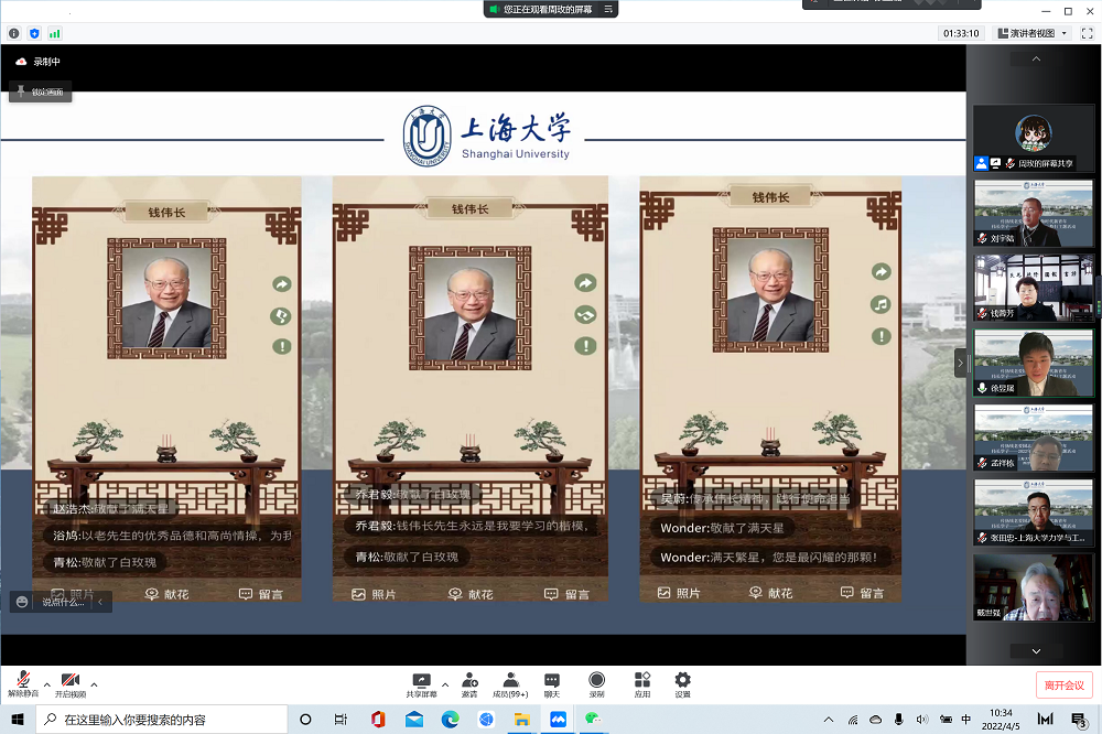 随后,参加仪式的全体师生进行了网络“云祭扫”活动,通过鲜花与留言寄托追忆与哀思,表达对钱伟长老董事长的深切思念和崇高敬意。
