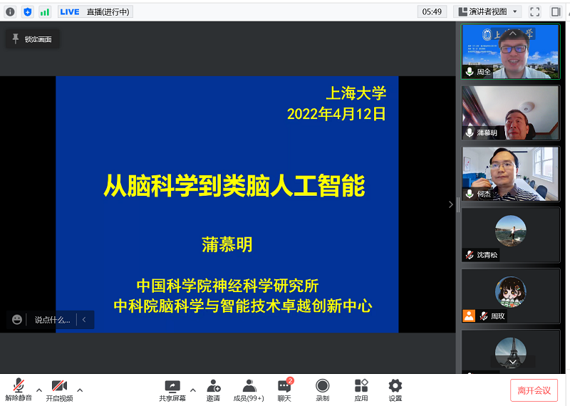 讲座最后,线上的师生们与蒲院士进行了积极的互动。同学们提出了许多既有深度又有广度的问题。“作为低年级的员工,如果以后要从事脑科学或类脑人工智能的研究,需要打好哪些科目的基础?”“有什么办法解决神经成像技术面临的大脑组织透光性不良的问题吗?”“当前脑机接口技术中,有哪些方向是具有一定的实用性?未来5-10年,有哪些脑机接口的技术会落地?”蒲院士逐一耐心倾听并给予了细致的讲解与阐释,蒲院士鼓励本科生要学好数学、物理等基础学科,同时还要掌握良好的计算机语言能力与人文社会等学科的基础,这样就为以后基础学科与跨学科研究奠定良好基础。蒲院士特别指出,今后同学们很有可能将会面临所学专业完全被人工智能所取代的情况,他强调,要学会如何适应时代的变迁,要学会如何适应各种技能的变化,还要学会如何适应最前沿的各种技术的出现,而这种适应能力仅仅把现有的专业知识学懂弄通是远远不够的,更要掌握如何钻研、如何解决问题的能力,这恰恰就是问题的关键。最后,蒲院士希望同学们要在本科阶段养成良好的学习能力、科研能力和综合能力,并养成终身学习的习惯,不断提升自己的科学素养与人文素养,在努力学习、潜心科研中不断提升自我、成就自我,为中国科技的发展与进步做出自己的贡献。(撰稿:谢依婷)