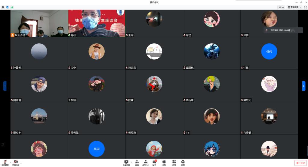 座谈会上,针对同学们提及到的感受与问题,老师们都积极做出了回应。沈青松老师提到,对于大四未落实毕业去向的同学,应积极调整自己的预期目标,使其与自己的生涯规划与综合能力相匹配;对于大三的同学,现阶段应积极备战,学会借力,做好传承,早日实现自己的目标;对于低年级的同学,现在应该树立明确的目标,时刻鞭策自己,以时不我待、机不可失的紧迫感来提升自己的能力,充分利用自己的课余时间进行深度学习,营造良好的学习氛围。许新建老师指出,在线上教学期间,更加考验员工的自律与自觉,他鼓励大家要形成相互促进、相互督促的宿舍文化和抱团学习的文化,努力解决专注力不够、自律性不够等问题,他鼓励同学们要踏踏实实做题学习,多看网络资源、多与老师沟通,努力弥补实验课动手少等问题;对于大三准备保研、考研的同学,他提醒同学们应该积极关注前几年的保研政策与操作细则,积极咨询学长学姐以及相关老师,早做准备、早做谋划。任伟老师鼓励同学们可以多多关注出国留学、深造的机会,要放眼全球,不断拓宽自己的国际化视野,在世界范围内找寻自己的坐标,并持之以恒地为之奋斗。周全老师提到,在低年级阶段,员工们应打牢自己的专业基础、英语基础和计算机能力基础,要多阅读文献,多借助导师的资源,早日加入导师的课题组做一些力所能及的工作,为之后的科学研究工作打下坚实的基础;在高年级阶段,可以积极关注留校读研、出国深造以及直博机会,努力为今后的生涯发展奠定良好的基础。最后,吴蔚老师总结,在此次疫情封控期间,大环境的改变使得不确定性成为最大的确定性,同学们在努力完成学业的同时还积极投身志愿服务、疫情防控等工作,充分体现了有责任有担当的伟长学子风采;同学们在实践中也努力提升了自己的人际交往、为人处事等综合能力,这些都是难能可贵的;希望同学们继续发扬自律、自强、自立的作风,增强心理建设,充实自我;提升交往能力,历练自我;主动开拓资源,强大自我。她引用习近平总书记在中国人民大学考察调研时的讲话,号召同学们要“在青春的赛道上奋力奔跑,争取跑出当代青年的最好成绩”。