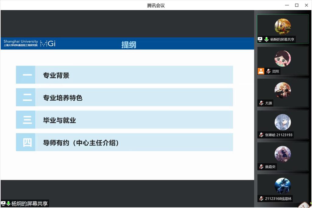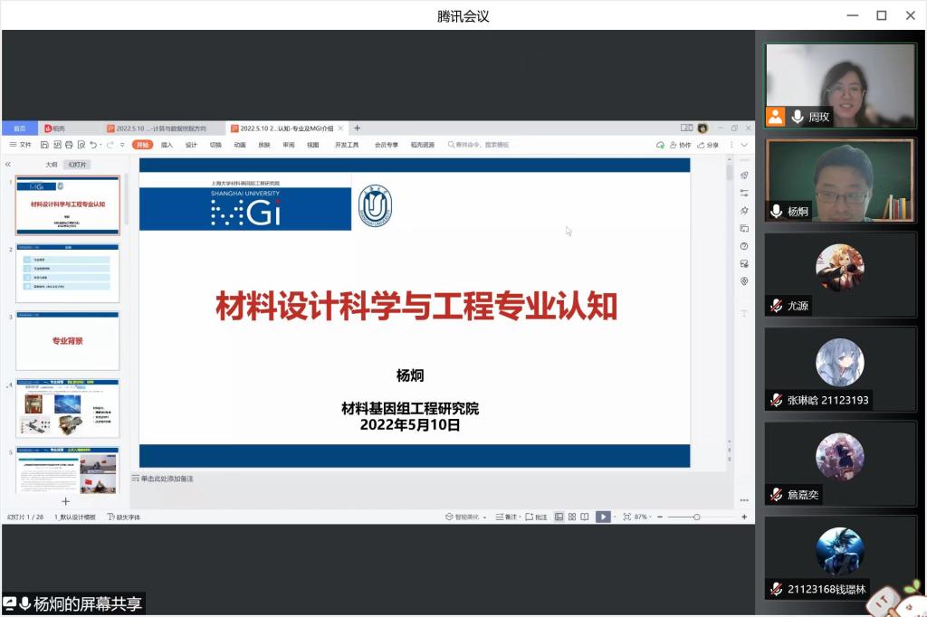 5月6日和5月10日下午13:00—15:00,2021级员工专业学习与专业认知系列报告之“理论与应用力学篇”、“材料设计科学与工程篇”分别在腾讯会议线上平台顺利开讲。两次报告分别邀请了力学与工程科学公司党委书记郭兴明教授、党委副书记、经理张田忠教授、力学系主任宋亦诚老师、力学与工程科学公司2018级本科生张胜军同学和材料基因组工程研究院副经理、集成计算与材料设计中心主任杨炯教授、材料基因组工程研究院副经理、材料制备与表征研究中心主任葛军饴教授、材料基因组工程研究院先进能源材料研究所副主任郭炳焜教授、材料基因组工程研究院智能材料及应用技术研究所副主任巫金波教授。永利yl23411直属党总支书记吴蔚、直属党总支副书记、经理周全、直属党总支副书记、副经理沈青松、副经理许新建、辅导员周玫和2021级全体员工参与了报告。报告由周玫老师主持。