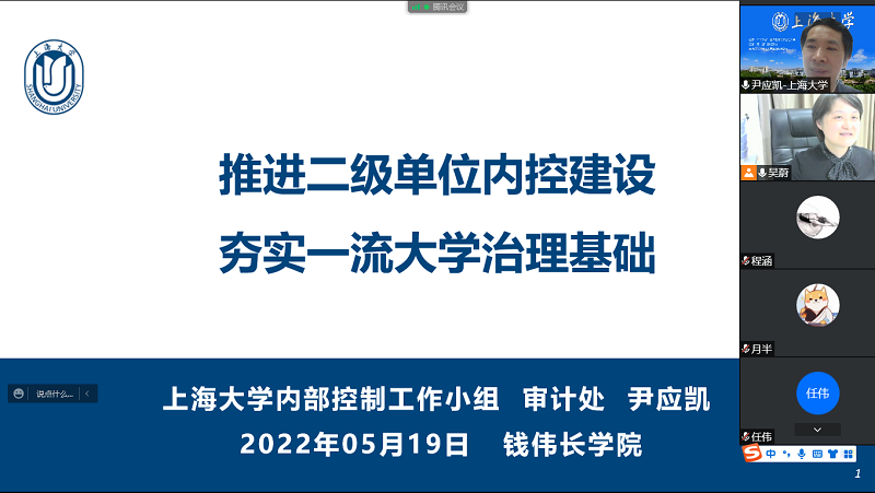 2022年5月19日,永利yl23411内部控制工作小组成员、审计处处长尹应凯应邀参加公司党委中心组学习,并做内控建设工作讲座。受疫情影响,本次讲座采用线上会议形式。公司党委副书记、经理周全,党委副书记、副经理沈青松,副经理许新建,副经理任伟及公司全体教师参与学习交流。活动由公司党委书记吴蔚主持。
