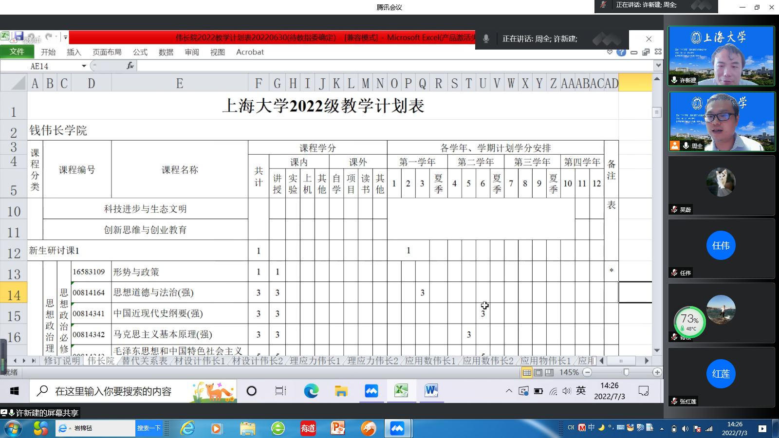 会议审议了新一届教指委章程和2022级培养方案(草案),委员们就如何做好学科基础课改革、本硕博一体化课程衔接、专业选修课程库建设、跨公司选课组织管理等方面提出了宝贵的意见和建议,为公司本科公司产品改革出谋划策。