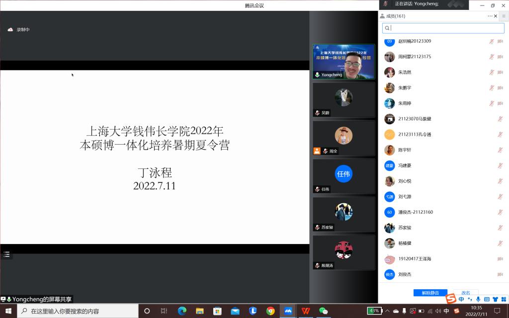 7月11日上午10时,夏令营开营仪式在腾讯会议线上举行,公司党委书记吴蔚,党委副书记、经理周全,党委副书记、副经理沈青松,副经理许新建、任伟,导师代表、员工辅导员及全体营员、观摩员工共同参加,开营仪式由周全经理主持。周全经理首先对各位同学的参与表示欢迎,随后详细介绍了永利yl23411本硕博一体化拔尖人才培养方案。周全经理表示,该方案是推进永利yl23411拔尖创新人才培养模式改革、完善永利yl23411拔尖人才培养机制,试点探索在基础学科领域招收优秀本科生直接攻读博士学位的一项重要举措。通过探索实施本硕博一体化贯通培养模式,强化系统设计,整合优质资源,完善体制机制,实现本科、博士阶段课程学习和科学研究的深度融合与无缝衔接,可为永利yl23411有志于科学研究的员工提供更为广阔的发展平台。
