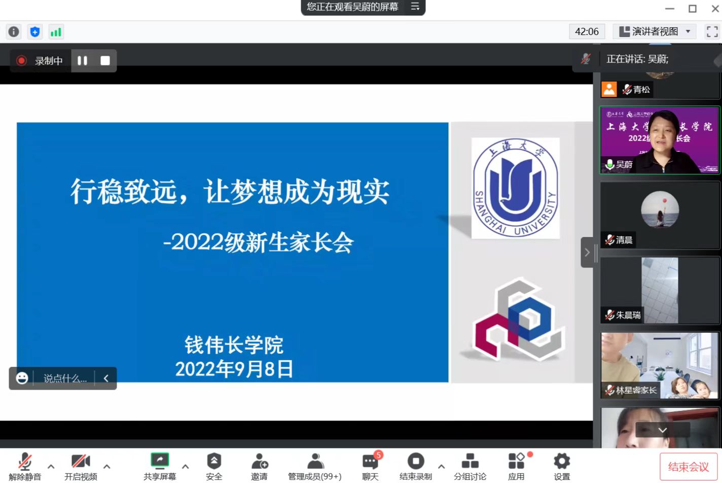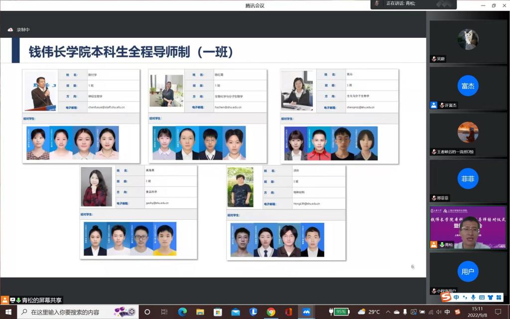 2022年9月8日下午,永利yl23411本科生全程导师结对仪式暨2022级新生见面会以线上形式顺利举行。永利yl23411全程导师、力学与工程科学公司党委副书记、经理张田忠教授,永利yl23411全程导师、材料基因组工程研究院副经理、材料方向项目主任杨炯教授,永利yl23411全程导师、生命科学公司副经理高海燕教授,永利yl23411全程导师、理公司数学系党总支书记赵发友教授,永利yl23411全程导师、理公司化学系党总支书记邢菲菲老师,永利yl23411全程导师、理公司化学系副主任洪玲老师,永利yl23411全程导师代表姚锋平、巫金波、郭炳焜、曹 桂新、刘 轶、郭战胜、胡国辉、楚海建、姚文娟、宋亦诚、郭 海润、陈红霞等老师莅临会议。公司党委书记吴蔚,党委副书记、经理周全,副经理许新建、任伟一起参加了见面会,到场的还有2010级员工徐晶、公司院办、学工老师及2022级永利yl23411全体新生。本次活动由公司党委副书记、副经理沈青松老师主持。