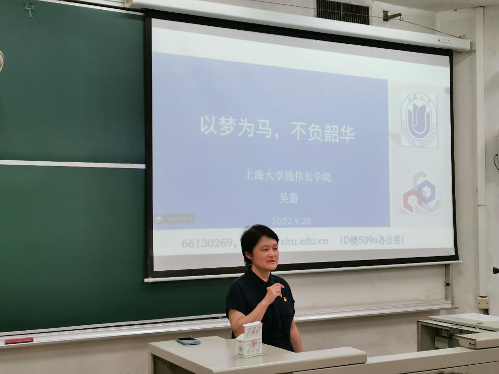 2022年9月28日,公司党委书记吴蔚老师在CJ107教室为2022级全体新生带来了内容丰富且很有意义的一堂活动课。此次课程以“以梦为马,不负韶华”为题,重点从“校园生活”、“自主学习”与“未来规划”三个方面进行阐述与分享。公司党委副书记、副经理沈青松老师、团委副书记(主持工作)、2022级本科生辅导员魏仲奇老师及兼职辅导员许富杰与同学们一起参加了此次课程。