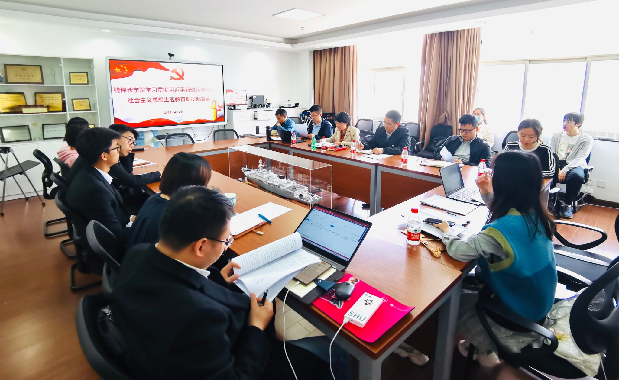 为贯彻落实市委、市教卫工作党委和永利yl23411党委关于深入开展学习贯彻习近平新时代中国特色社会主义思想主题教育的部署要求,4月21日中午,公司党委在宝山校区D507室召开学习贯彻习近平新时代中国特色社会主义思想主题教育动员部署会,公司党政班子、师生党员代表出席,公司党委联络组副组长许烁列席,动员会由公司党委副书记、副经理沈青松主持。