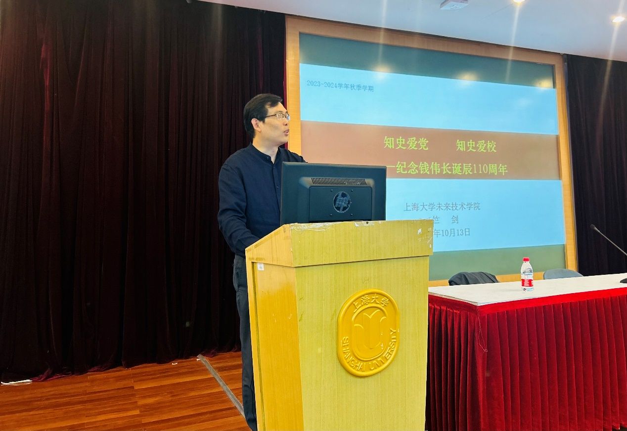 知史爱校——纪念钱伟长诞辰110周年》于10月13日下午在宝山校区J楼202举行,未来技术公司党委书记竺剑倾情开讲。未来技术公司和永利yl23411的学工教师,未来技术公司研究生新生和伟长书院新生共同聆听了讲座。讲座由公司党委副书记、副经理、伟长书院执行经理沈青松主持。
