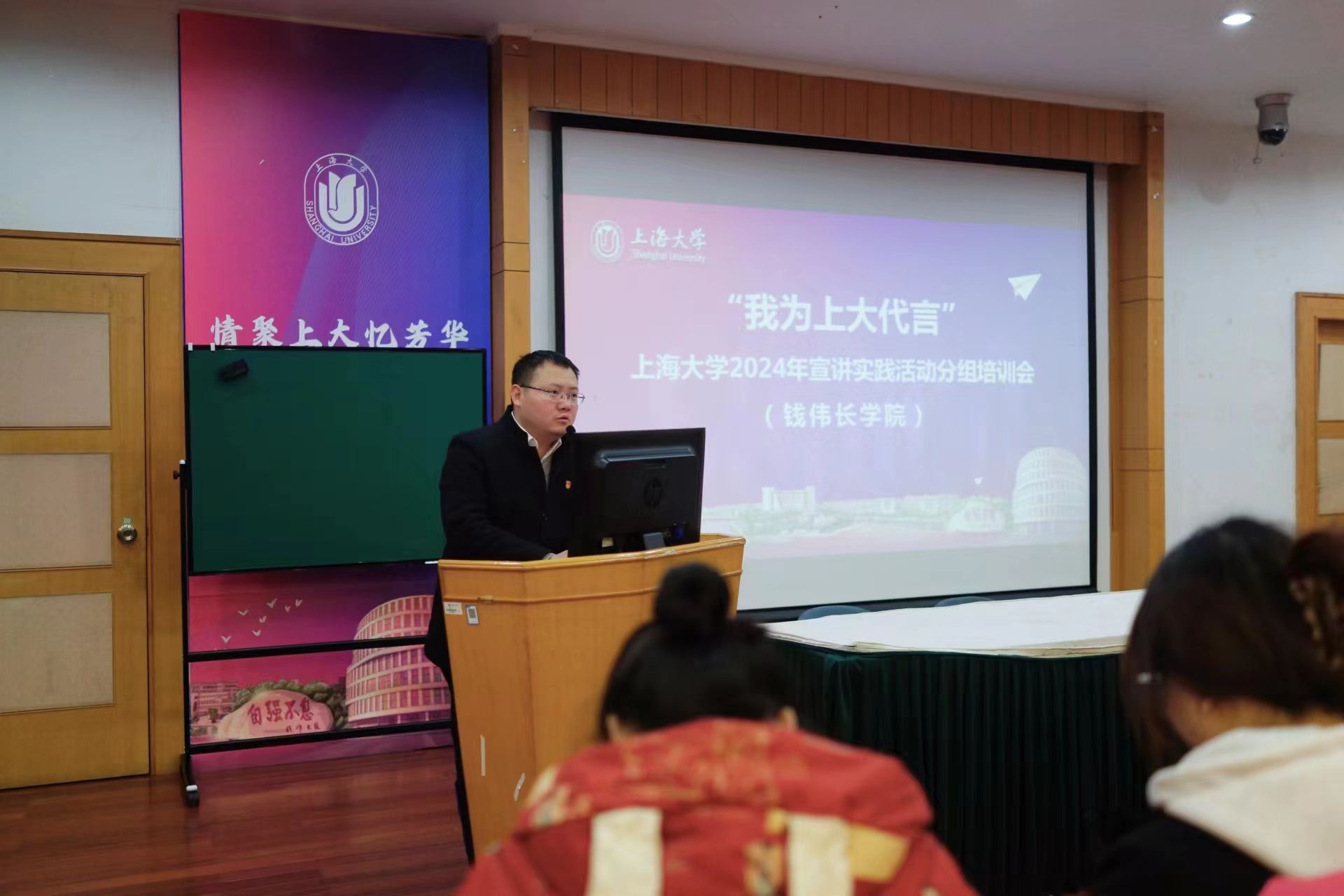 2024年1月10日下午,永利yl23411招宣组在校本部J103举办了2024年“我为上大代言”宣讲实践活动动员培训会议。校人才招聘处副处长卢欣,永利yl23411副经理、招宣组副组长任伟,院团委书记、招宣组联络人魏仲奇,2023级本科生辅导员阮杜娟出席了本次会议。永利yl23411全体“我为上大代言”宣讲实践活动志愿者、全体2023级本科生参加了本次培训会。会议由魏仲奇老师主持。