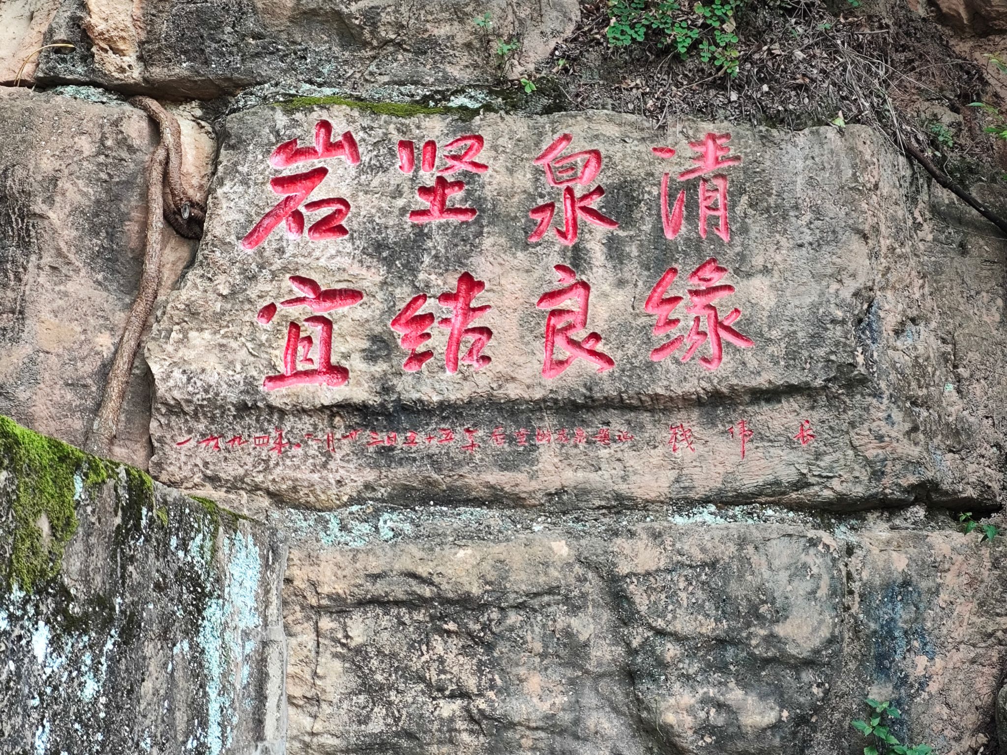 16日下午晚些时候,实践团攀上岩泉山,观赏篆有“岩坚泉清,宜结良缘”的摩崖石刻,感受对那段历史的纪念与缅怀。