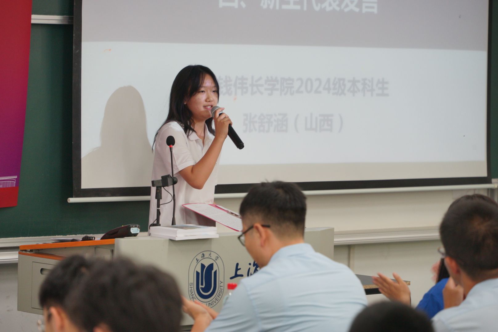 随后,2024级新生张舒涵作为新生代表发言,她分享了自己来到永利yl23411后的所见、所感、所想,表达了自己坚定选择基础学科的信心,期待能在自己喜欢的领域学有所获。她表示要践行“自强不息、道济天下”的校训,秉持“上善若水、海纳百川、大道明德、学用济世”的大学精神,保持初心,在追梦路上不断前行。