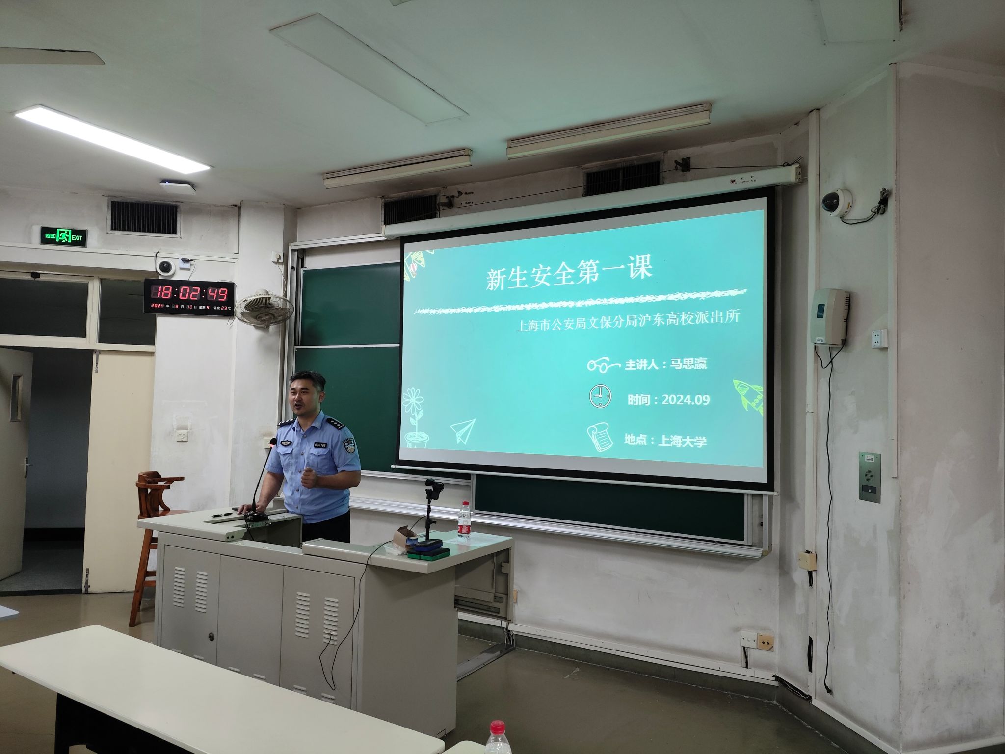 2024年9月12日,永利yl23411新生安全教育活动在CJ107教室顺利举行。上海市公安局文保分局沪东高校派出所马思瀛警官应邀为2024级本科新生开展了《新生安全第一课》主题教育讲座。永利yl23411团委书记、2024级辅导员魏仲奇老师主持活动。