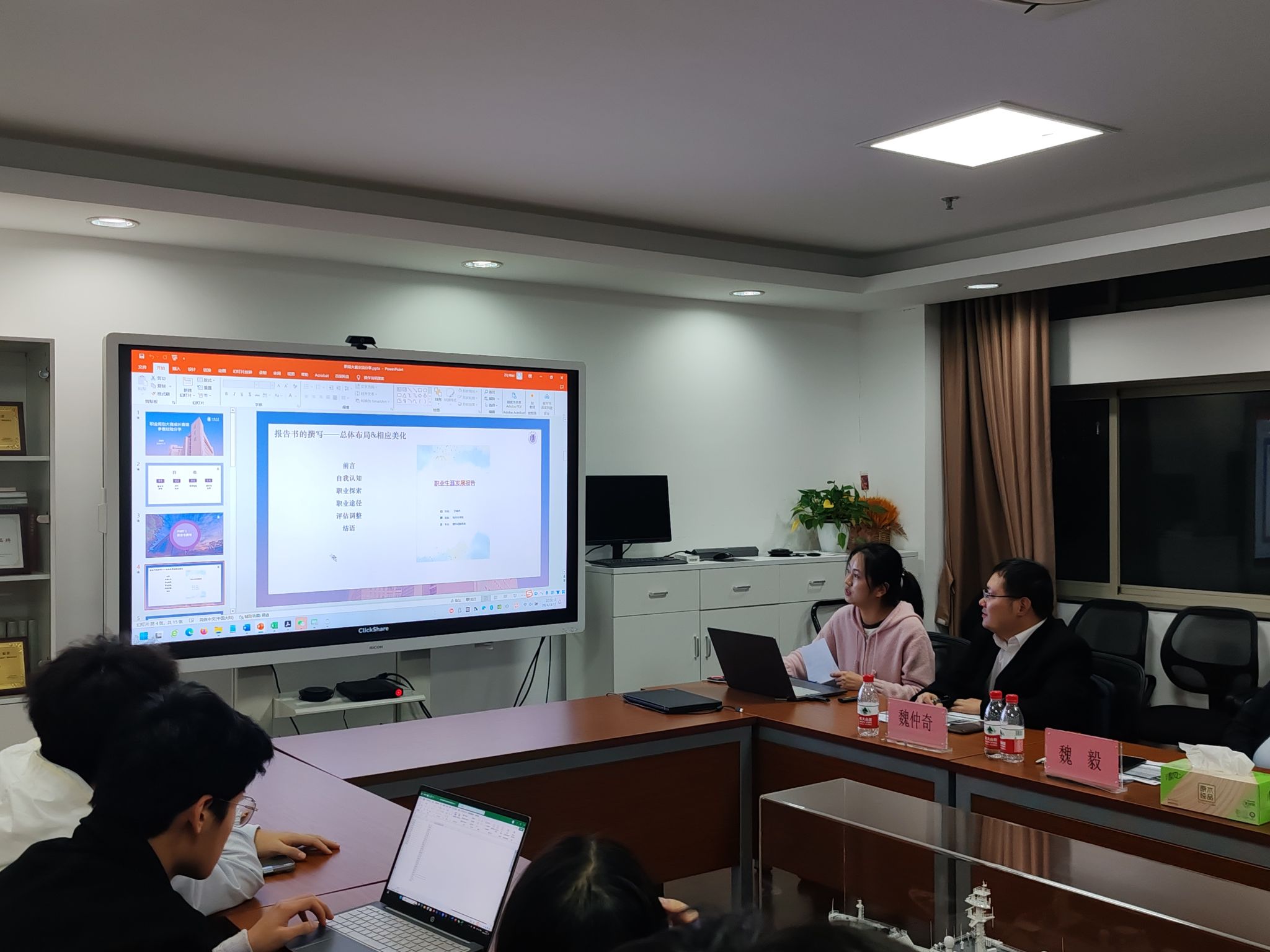 比赛结束后,荣获2023年全国老员工职业规划大赛校赛二等奖的卫嫣然同学分享了自己的参赛经验,着重介绍了报告书撰写、ppt制作及演讲表达等方面的技巧和注意事项,还细心地对比了往年和今年赛事细则的区别,为本届参赛选手准备校赛复赛提供了参考。