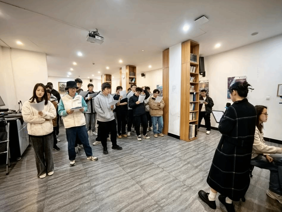 在合唱比赛的筹备中,两院的同学们全力以赴。随着冬季学期的启幕,大家热情高涨,踊跃报名。同时,还邀请了音乐公司的邵艺涵、麻义曼担任本次活动的艺术指导,共同投身于紧张而有序的排练之中。依托伟长书院现有空间,后勤保障负责同学每次排练前都会整理布置南区2号楼(伟长书院)一楼多功能厅,为排练腾出场地。音乐公司的学姐们全方位指导合唱,精准划分声部,挑选领唱。同学们也克服重重困难,百忙中抽空参与排练,各尽其能。正是大家的齐心协力,才能在短时间内取得在合唱艺术上的进步以及艺术的浸润。