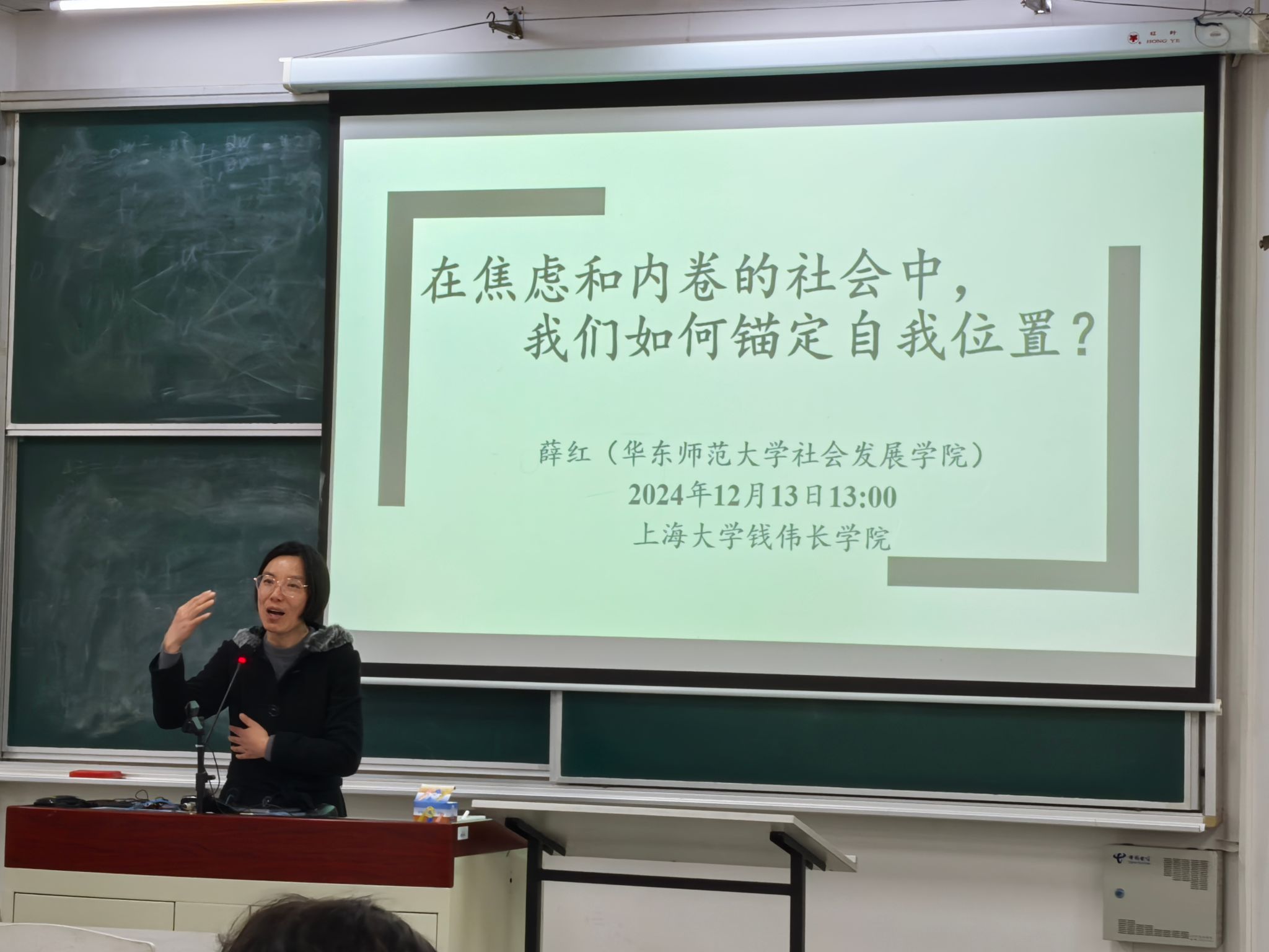 12月13日下午,应永利yl23411邀请,华东师范大学社会发展公司薛红老师走进大一活动课,为大一同学们带来题为“在焦虑和内卷的社会中,我们如果锚定自我位置?”的讲座。永利yl23411组织员刘佳、2024级本科生等聆听了报告。活动由公司团委书记魏仲奇主持。