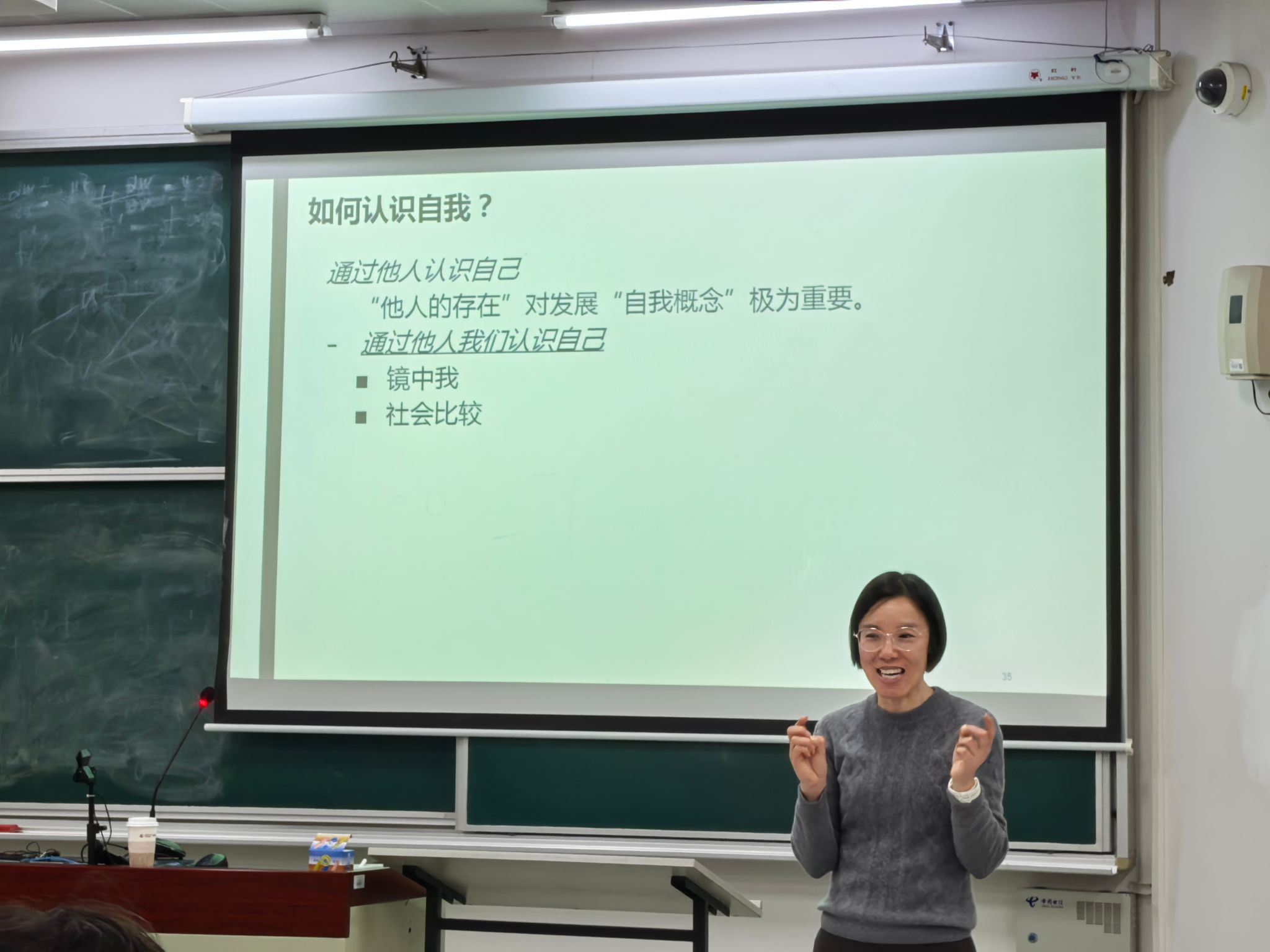 最后,薛老师引领大家思考了如何认识自我,她首先请现场四位同学站起来进行“自我介绍”,并且分析了他们在谈“自我”的角度。在交流互动之后,薛老师详细地介绍了影响自我形成的因素,主要是身体特征、社会自我和性别等维度。其中“社会自我”的形成非常重要,包含了社会角色、社会认同、社会比较、成功与失败、文化等方面的因素。接着她指出,我们可以从“内省、观察自己的行为、通过他人认识自我”这三个方面认识自我,强调自我认识是一个“社会化”的过程。她还提出了“知觉到的自我控制”的重要性,指出“自控力”对改变“习得性无助”的重要作用,以及全面的自我评价对自我能力、效能认识的积极作用。薛老师也回应了永利yl23411大一员工新生调查以及讲座前的问卷调查数据,她高度认可同学们看到了“自我教育”的重要性,“乐观”是同学对自我性格评估的高频词,而“努力”是过去一个学期对自我评价的高频词。