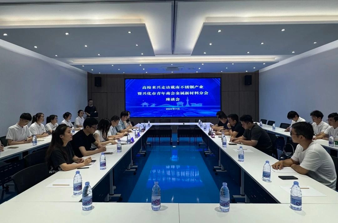 在高校来兴走访戴南不锈钢产业暨兴化市青年商会金属新材料分会座谈会上,戴南镇团委系统介绍了戴南不锈钢产业辉煌的发展历程、庞大的产业规模、清晰的未来蓝图,并重点阐述了产业发展的共性需求与对高校智力支持的深切期盼。